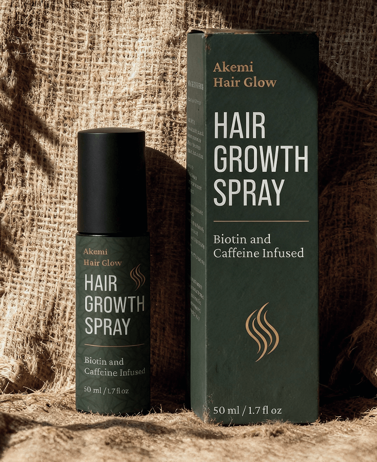 Akemi Hair Glow is a hair growth spray meant for daily use on the scalp. Unlike oils or supplements that work indirectly, this spray is formulated to be applied directly on thinning or problem areas of the scalp to help nourish and support healthier hair growth over time. It’s lightweight, non-greasy, and designed to fit easily into morning or night routines.